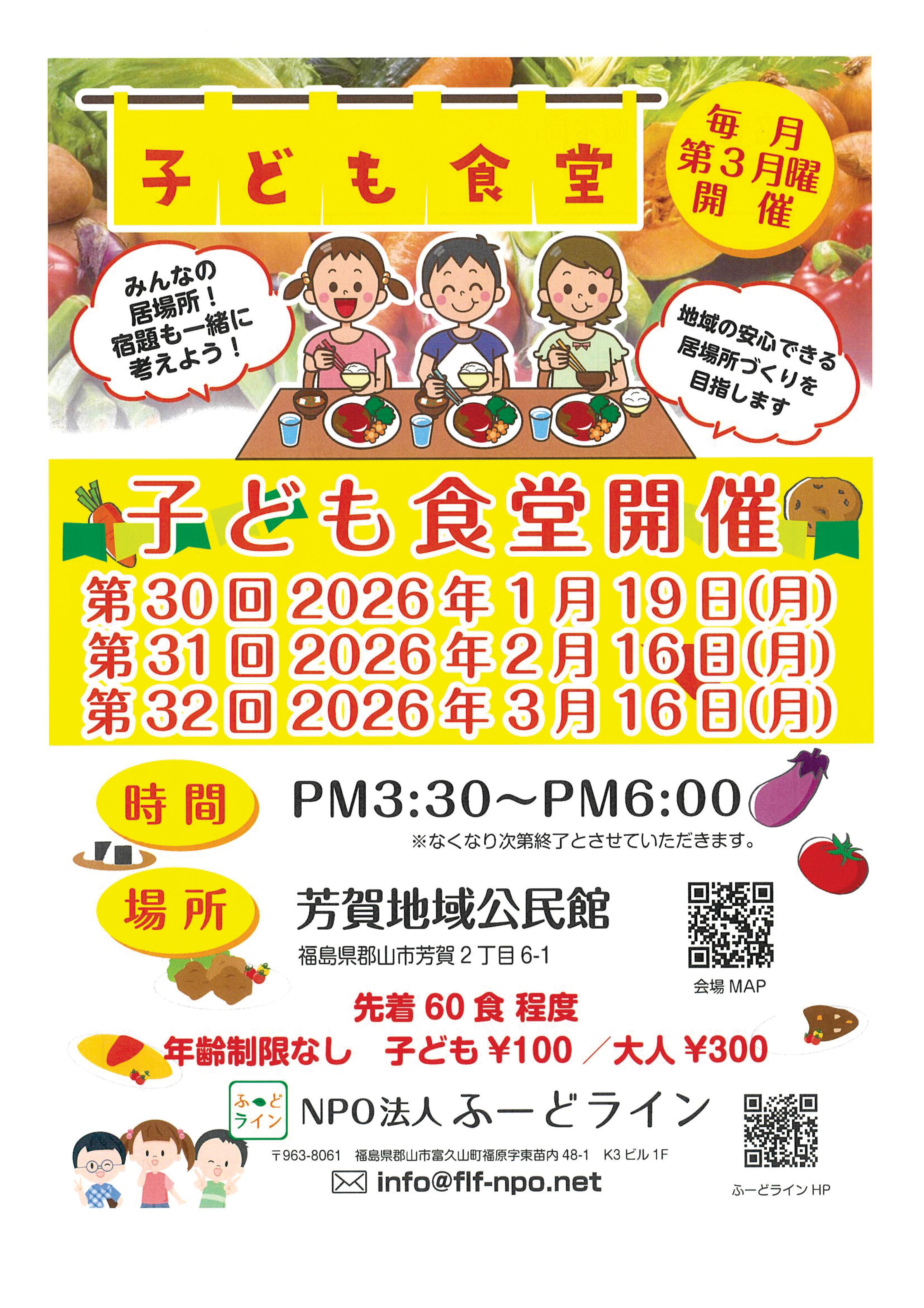 子ども食堂開催のおしらせ。